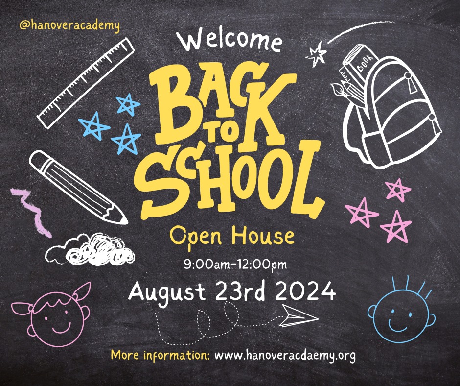 Please Join Us For our End of the Summer Open House! 9:00 am – 12:00 pm August 23rd 2024 Hanover Academy 117 Frances Road Ashland VA 23005 (804) 798-8413 Look forward to: Fun Activities Meet Teachers and Staff School Information Available